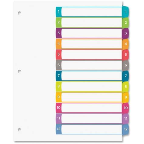 Avery 12 Tab Divider Template - Create professional presentations with custom printed. Customize with a logo, name, date or project title to the left of section titles. For laser and inkjet printers, 12 tabs. The different numbers represent different styles and pack sizes, but they all. Several avery table of contents dividers come with a 12 tab set.