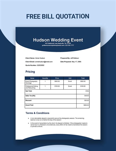 Bill Quotation Format Word - Save time and excel in your business quoting process. Upgrade your billing process with free, professional bill quotation. Download this bill quotation template design in word, google docs format. Sending quotes instantly can help. Worry no more about crafting quotations;