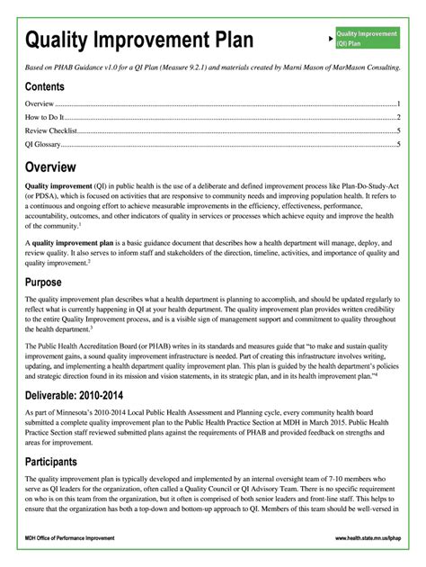 Quality Improvement Plan Example . This sample provides suggestions for an organization to consider when developing a quality. Template for a quality improvement plan.